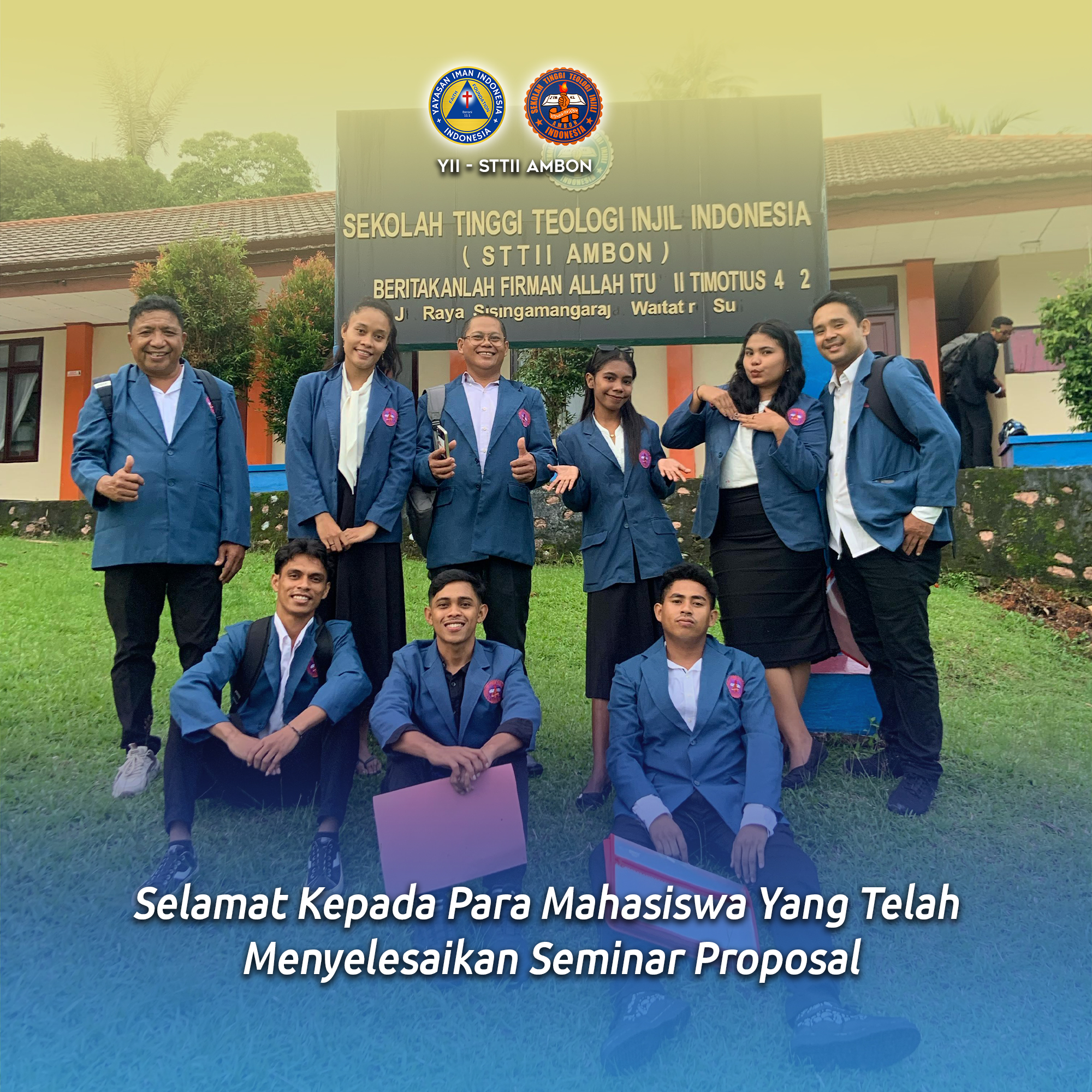 Pada hari Jumat, 11 April 2025, sebanyak 9 orang mahasiswa STTII Ambon mengikuti seminar proposal skripsi dengan penuh semangat dan antusiasme. Kegiatan yang dilaksanakan di.......